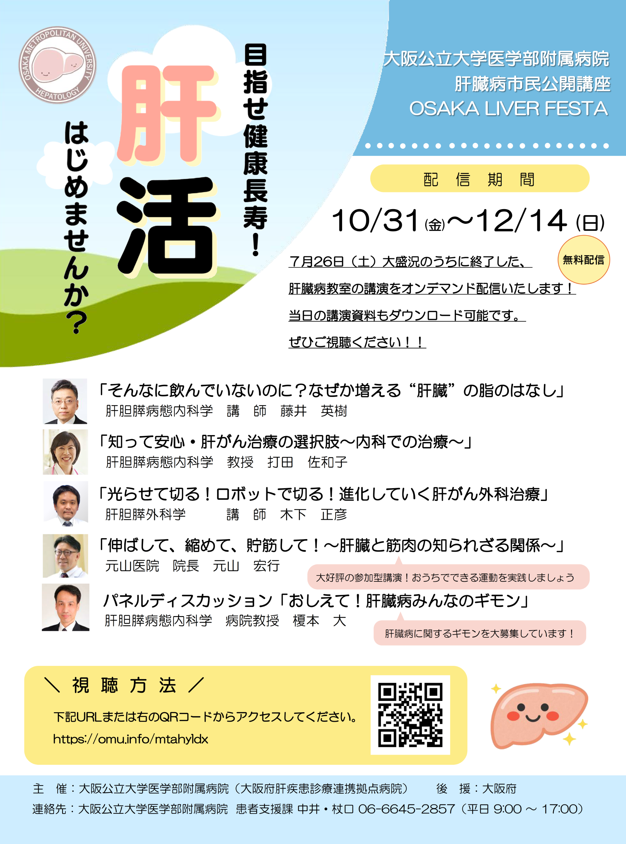 2025/1/13 大阪公立大「肝臓病教室」の案内を追加いたしました。(更新内容はこちらから)